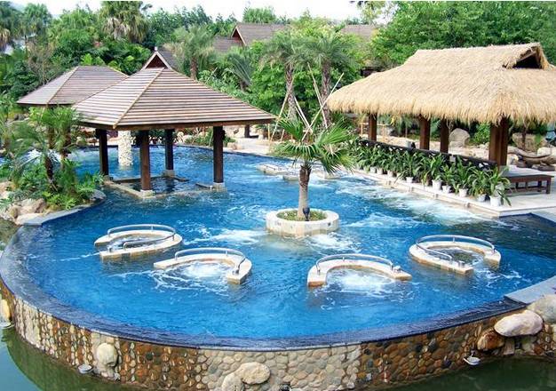 60多个功能各异的养生温泉池,温泉区园中有景、景中有桥、桥下有池,泉景相融,以海洋温泉水质为亮点,以露天温泉为特色,极具医疗、保健、养生等功效。