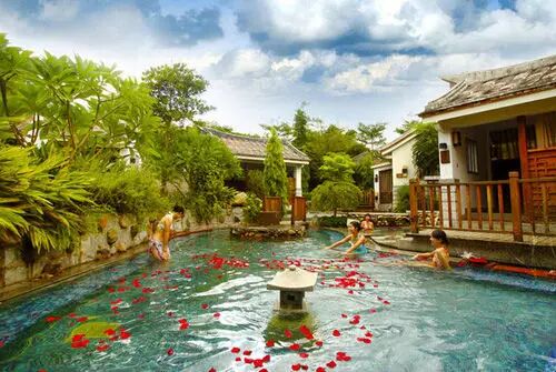 温泉汤池位于最佳的客房环境之中,房间与汤池并无绝对的隔阂,清茶小点池边相佐,浪漫柔情,温泉水质中性温和,属稀有优质碳酸石盐泉,具有按摩、收敛、消肿、止痛、美颜、保健、延年等多重功效;