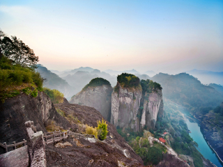 约09:00 游览武夷山景区精华【九曲溪竹筏漂流】,顺流而下,尽览山光水色。 九曲溪:九曲溪漂流是福建武夷山旅游最富特色之处,素有到武夷山“不坐竹排(竹筏),等于白来”之说。坐上宽约两米、长约九米的仿古竹筏,经全长约9.5公里的九曲溪随波逐流而下,溪面忽而平缓似池,忽而湍急如潮,竹筏随之或珊珊而行,或疯颠舞蹈,您随之亦然。九曲的溪水落差不是很大,但在这九曲溪的蜿蜒中可以感受到大自然的缠绵,在溪水的清澈中感受到大自然的清灵纯洁,在溪旁的风光中感受到大自然的神奇妙曼。