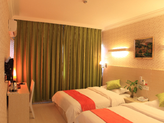 房间:标准间 建筑面积:20平方米 床型:大床房1.5米,双床房1.2米 设施:电话、液晶电视机、电热水壶、电热水器、淋浴、浴室